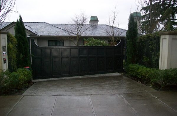 This double swing gate is solid iron to give the maximum privacy-security for the home.