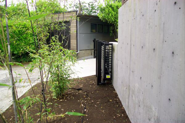 Aside from security, one of the clients’ main requests was that the gate blend nicely with the existing, rectilinear design of the home. Typically, our gates are painted black so that they blend well with the surroundings. However, for this gate, we finished it off with a dark bronze to resemble the existing burnt cedar fencing (not pictured).